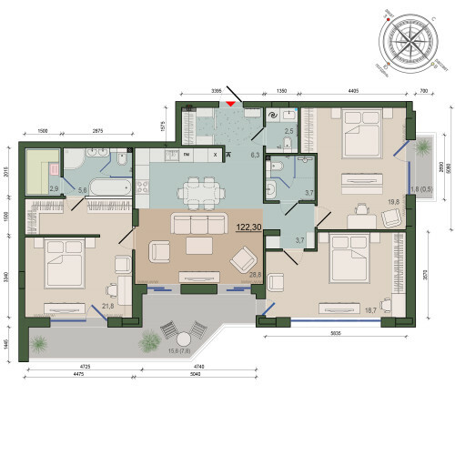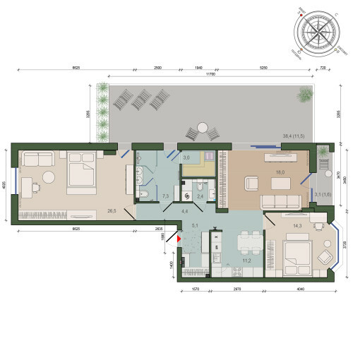 Создание повышенного комфорта жилой квартиры, путем организации открытой террасы - летнего помещения для отдыха; Открытость территории для каждой квартиры, много естественного света.